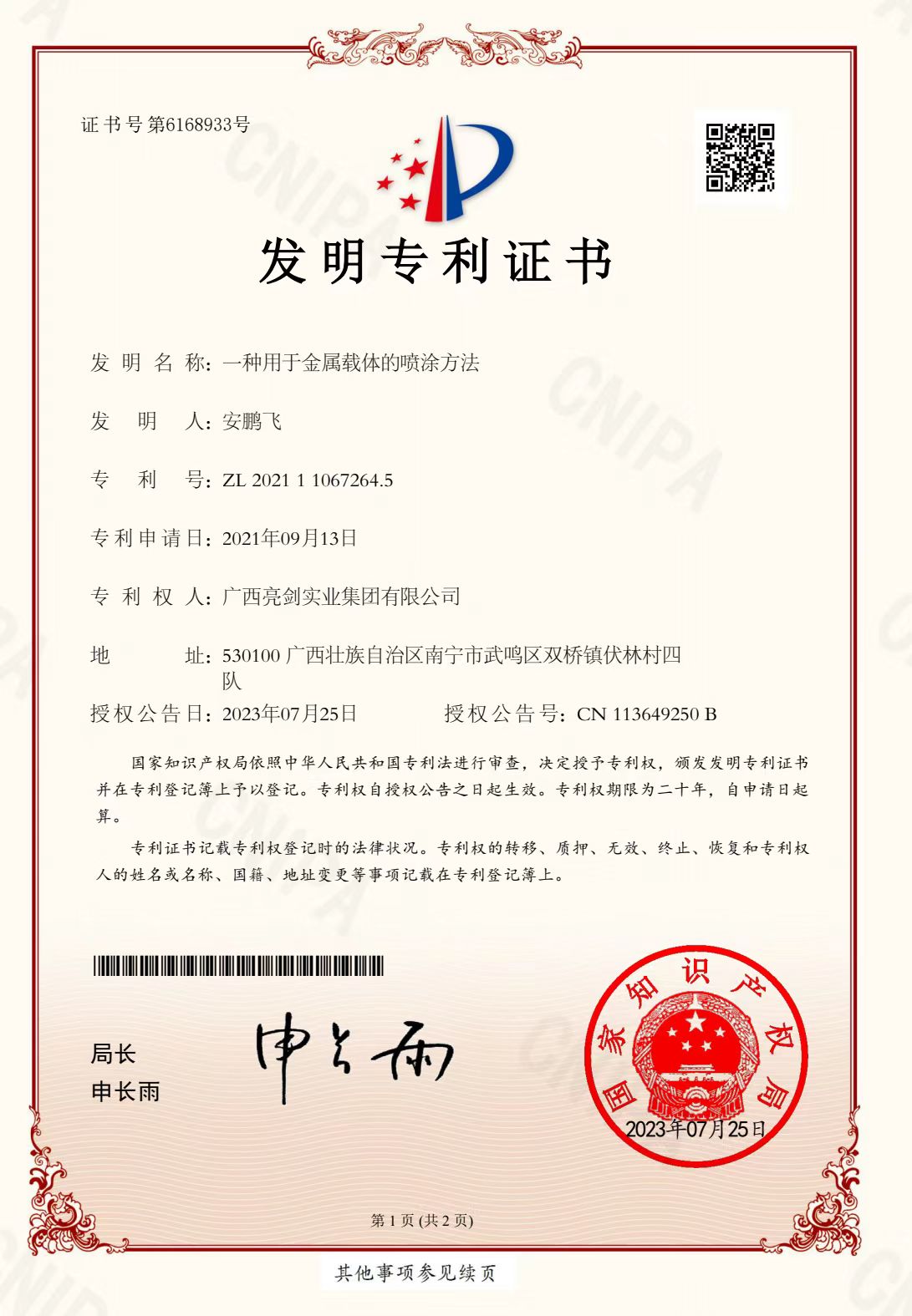 Invention Patent Certificate
