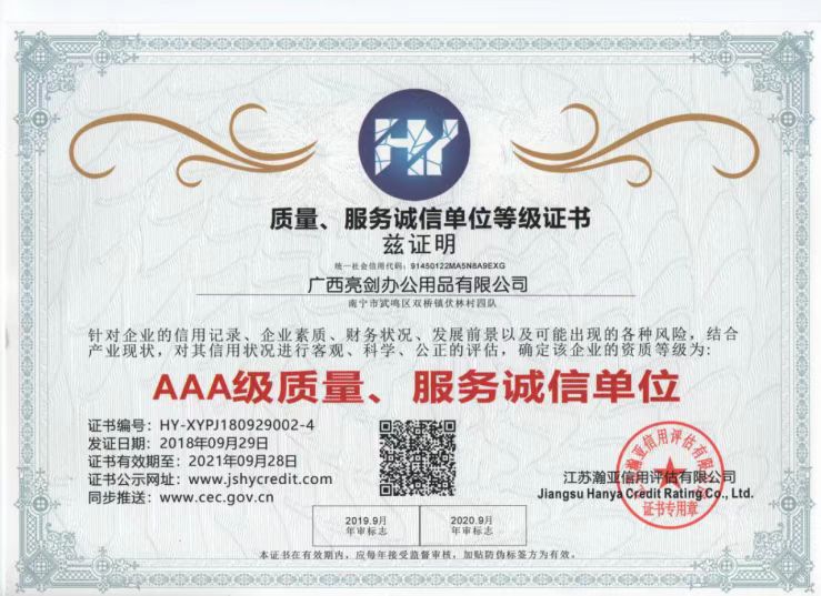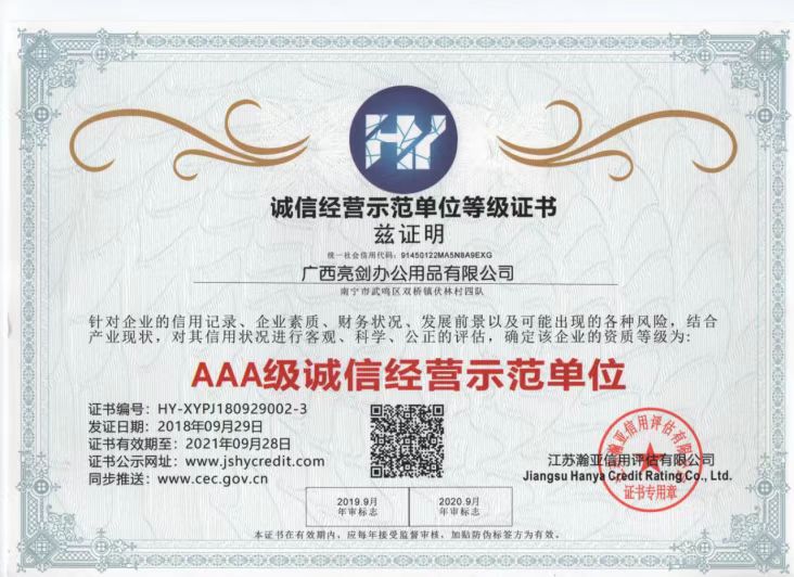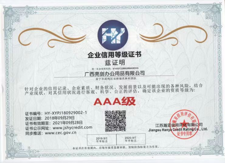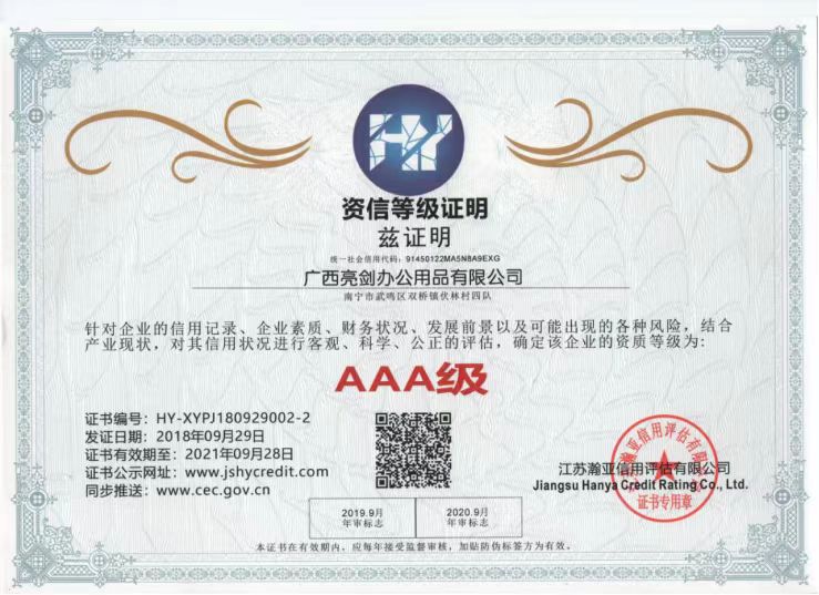 AAA Enterprise Credit Rating Certificate